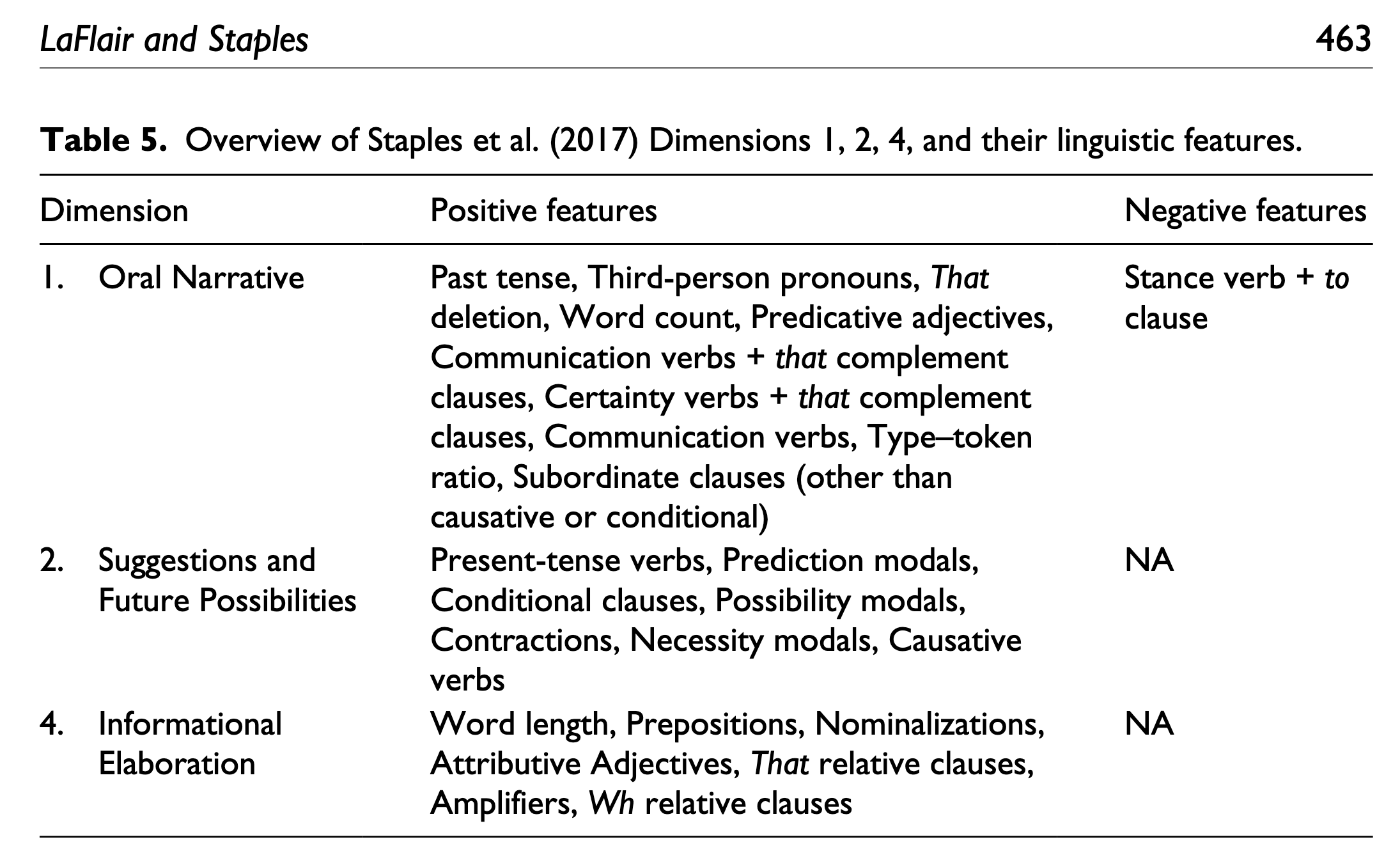 | Corpus Lab 4 | Fine-grained syntactic complexity | 8/12 (Tuesday) |