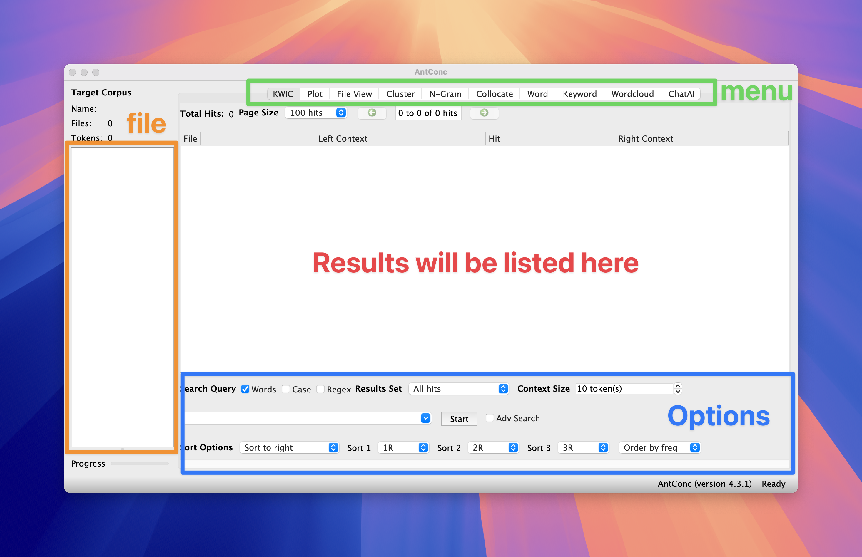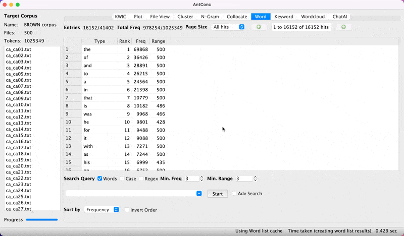 - Derive vocabulary frequency list using concordancing software (e.g., AntConc)