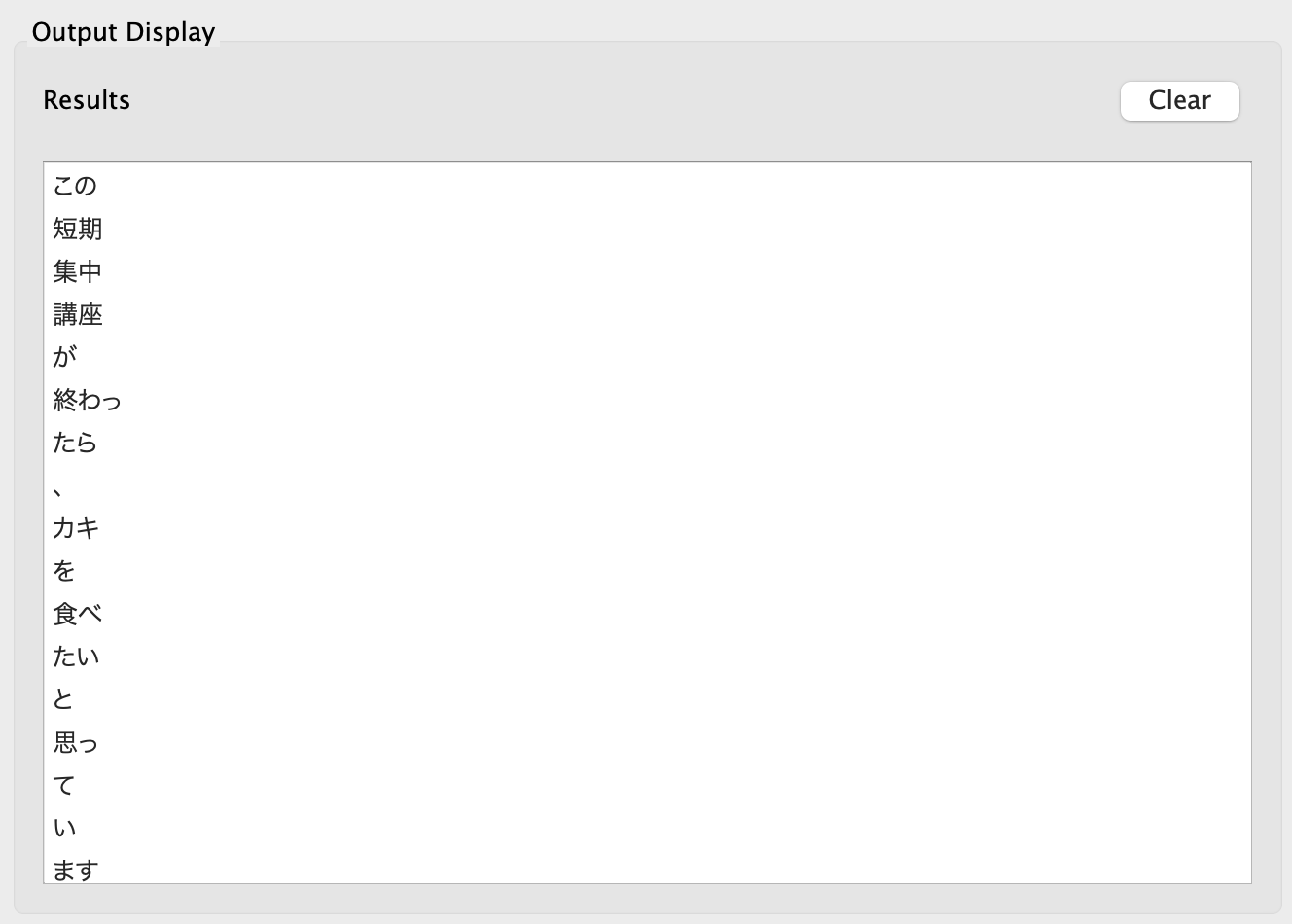 | word+pos | カキ_NOUN を_ADP 食べ_VERB たい_AUX |
