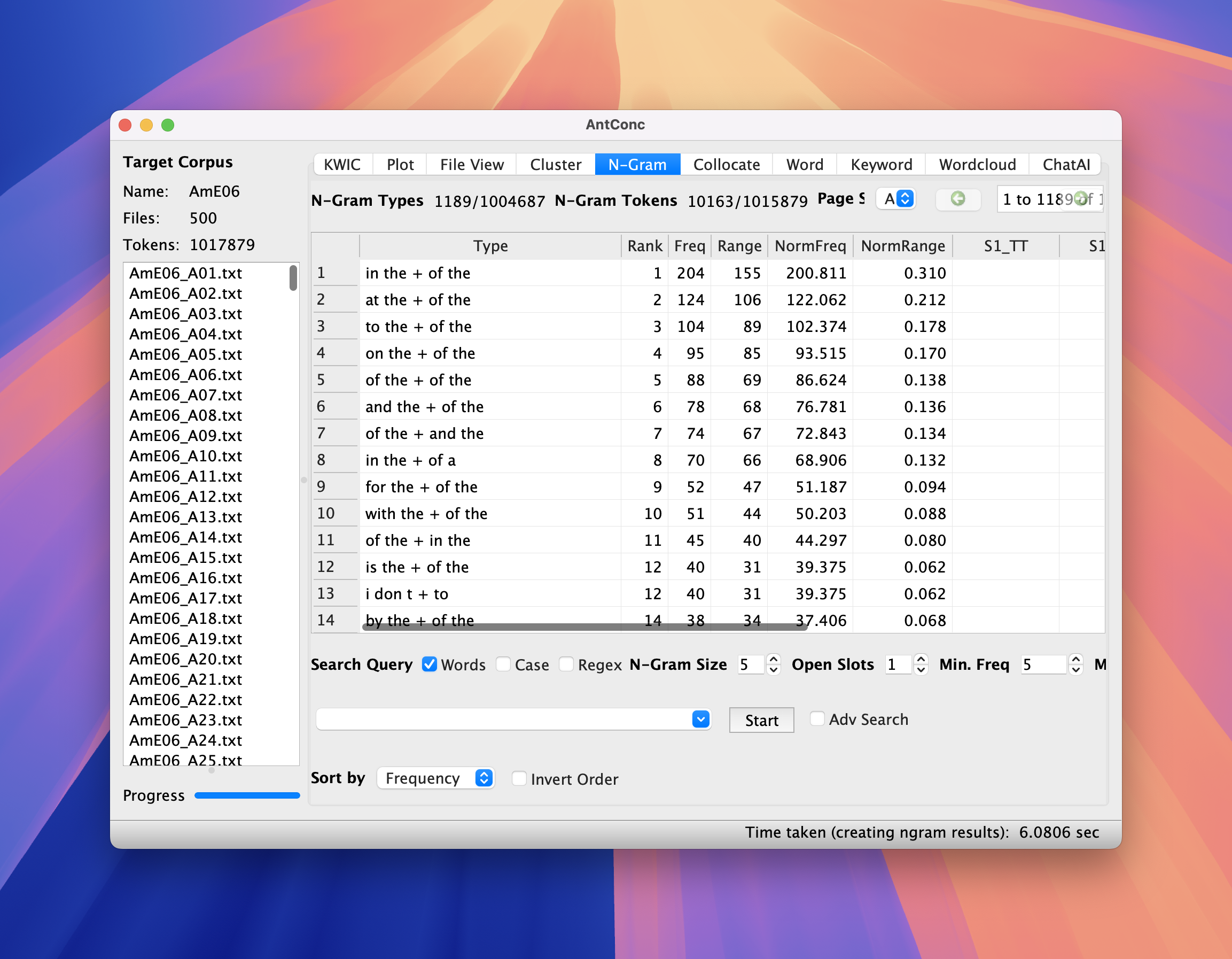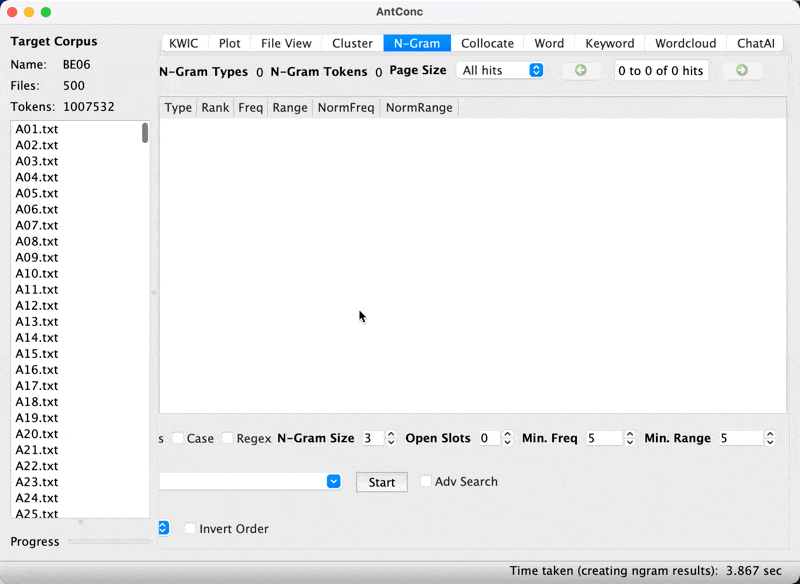 - Search for window-based collocations and n-grams in AntConc
