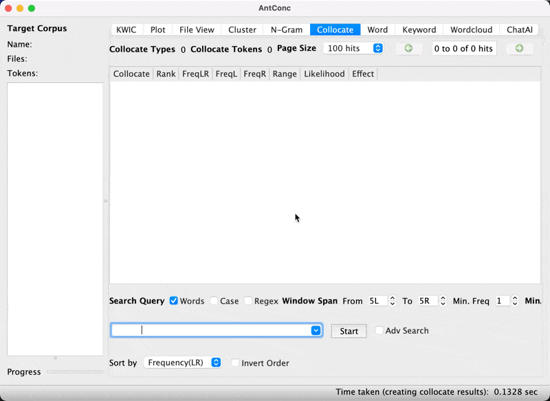 | Min. freq | how many times the collocation must occur |